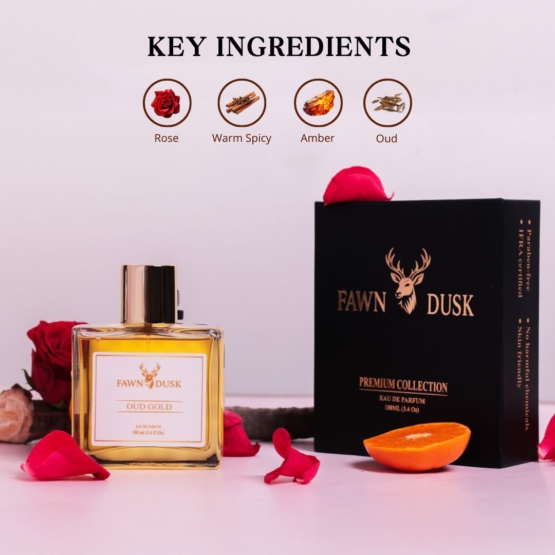Oud Gold is a fragrance born from the union of opulence and depth. It opens with warm, subtly sweet notes that immediately command attention, leading into a heart of rich oud layered with smoky and balsamic accords that add intensity and sophistication. As it settles, the base reveals deep amber, soft musk, and resinous woods, creating a long-lasting trail that is powerful, smooth, and irresistibly luxurious.